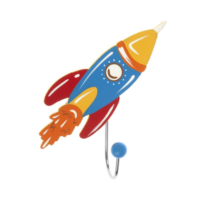 Ξύλινη κρεμάστρα τοίχου πολύχρωμος πύραυλος.
