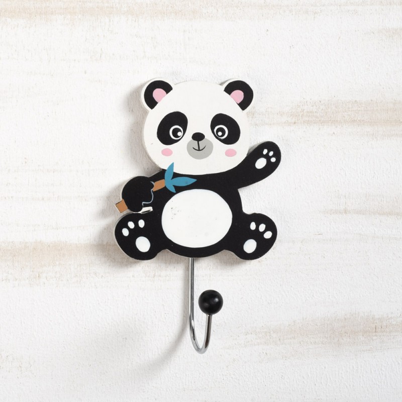 Ξύλινη κρεμάστρα τοίχου panda σε αποχρώσεις του άσπρου και του μαύρου.