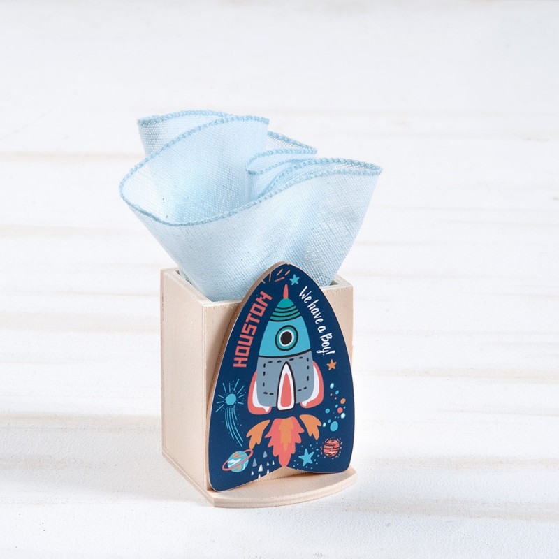 Ξύλινο ημερολόγιο με κύβους σε natural χρώμα. Διακοσμημένο με κοπτικό Διάστημα.