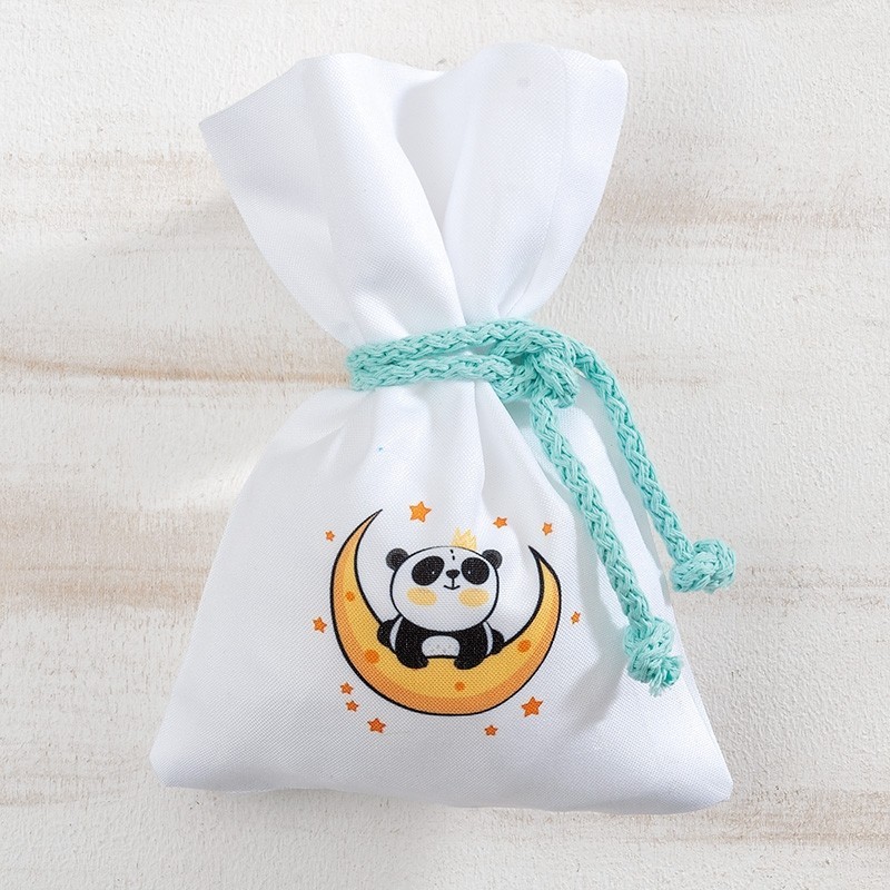 Υφασμάτινο λευκό πουγκί με print panda.