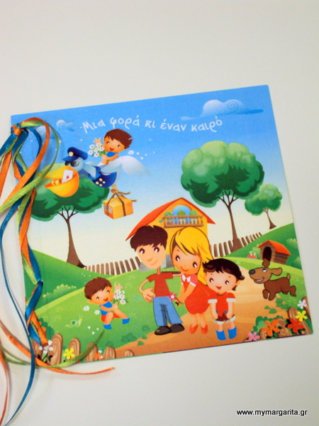 Παραμύθι προσκλητήριο βάπτισης αγόρι χαρούμενη οικογένεια